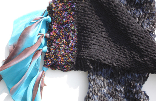 Materials: Polyester, Acrylic, Nylon, Hand-dyed Silk Ribbon
